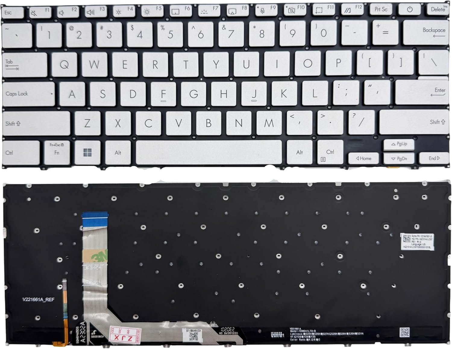 XINDIKBHU US Layout Laptop Keyboard for ASUS e510m e510ma l510m l510ma S533 S533E S533EA S533F S533FA M533 M533F M533E M533U M533I M533J Newly Replaced Keyboard (Silvery with Backlight)